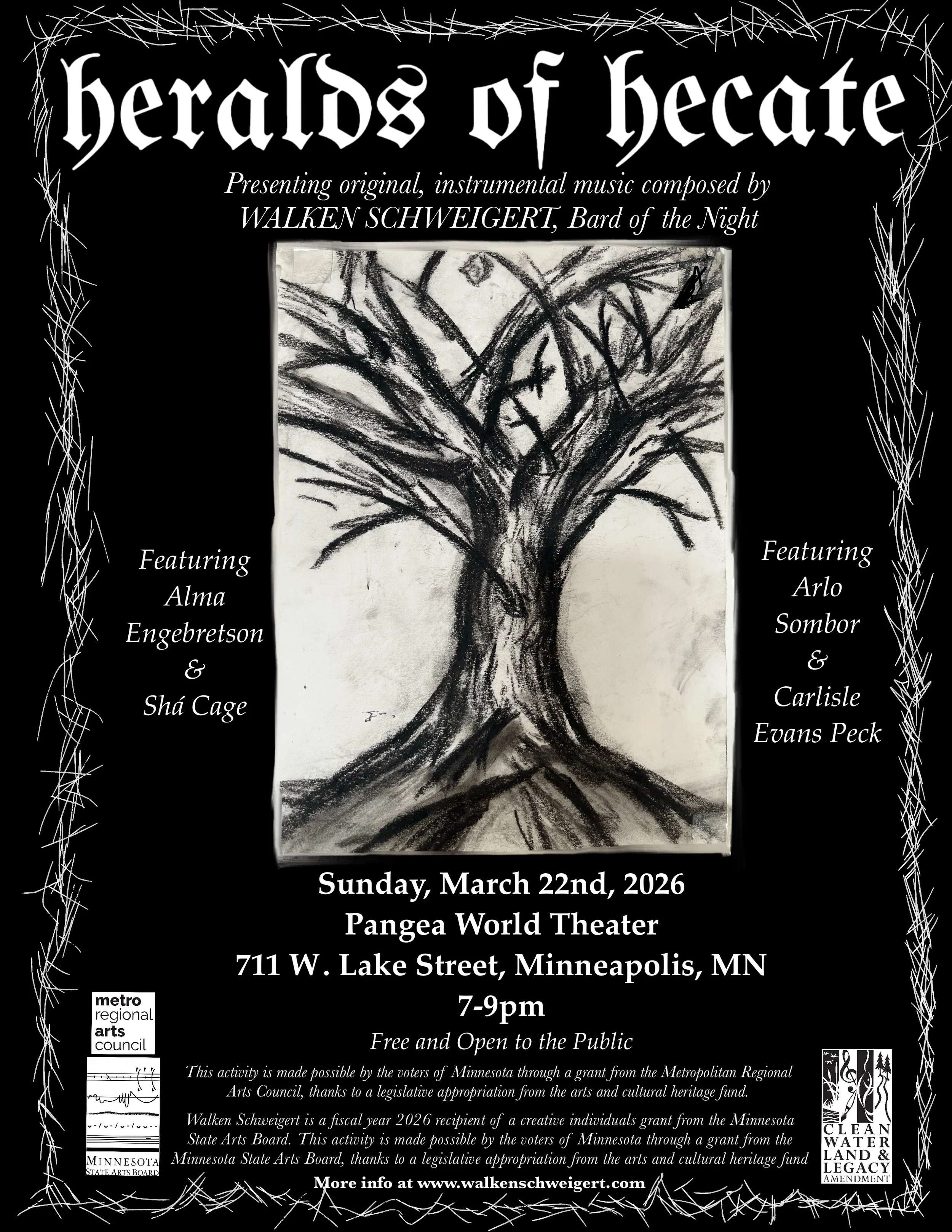 An evening presentation of an original body of electro/orchestral work composed by trans composer Walken Schweigert, Bard of the Night, inspired by Silvia Federici’s seminal work Caliban and the Witch.